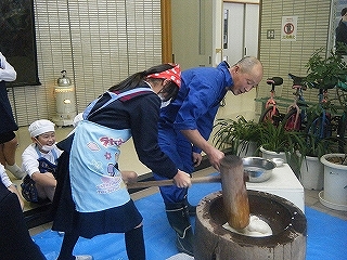 餅つきの後に、子供達はきなこやあんこのお餅をほおばりました。