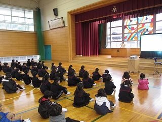 交えて教えてもらいました。子供たちは良い姿勢で話を聞くことができました。