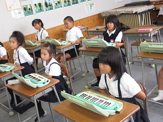 今日の1時間目に、1・2年生の鍵盤ハーモニカ講習会がありました。
