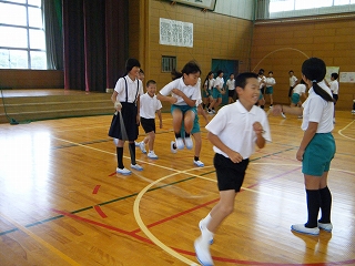 久しぶりのスポチャレに、「なわとび嫌いだァー」と言っていた子もやり出すと、熱が入ってどんどん跳んでいました。どの学年も頑張っていました。1年生は1学期に比べて怖がらなくなり、跳べる回数も増えてきました。5年生は驚きの速さで跳んでいました。担当の先生から上手く跳ぶコツを教えてもらい、子どもたちは次回へ意欲を燃やしていました。