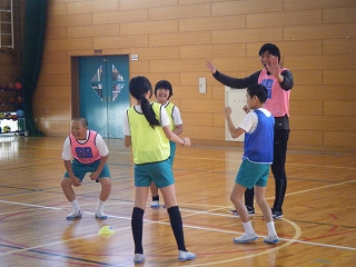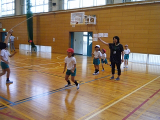 体育館では、異学年の子供達が一緒に鬼ごっこやバスケをして元気に遊んでいました。