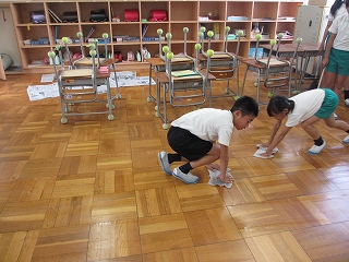 その後に、6年生の子供達がワックスがけをしてくれました。