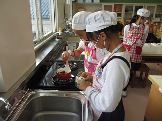 ②チョコフォンデュを作っています。