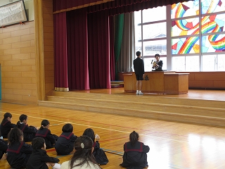 1時間目に、全校集会がありました。