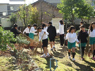 今日は全校で中庭にある落ち葉を拾いました。