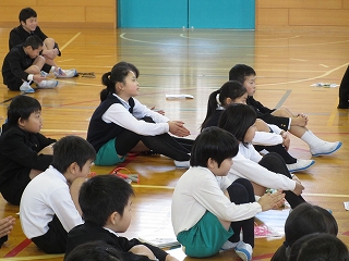 5年生の子供達が実行委員として、最終リハーサルを体育館でしています。