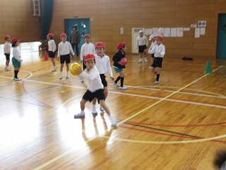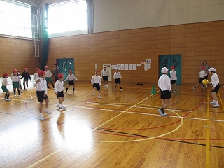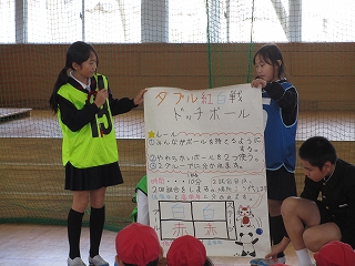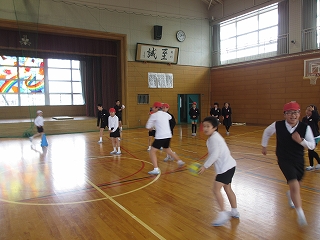 先週、縦割り班で給食を食べた後、全校でスポーツ大会をしました。