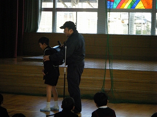 毎日、子供たちの登下校を見守ってくれているボランティアさんが学校に来てくれました。