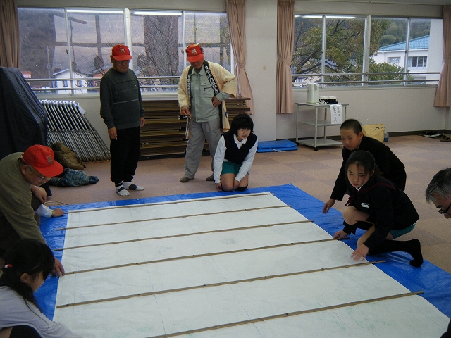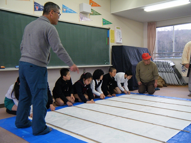 5年生は、凧の会の方に丁寧に教えてもらいながら凧を作りました。