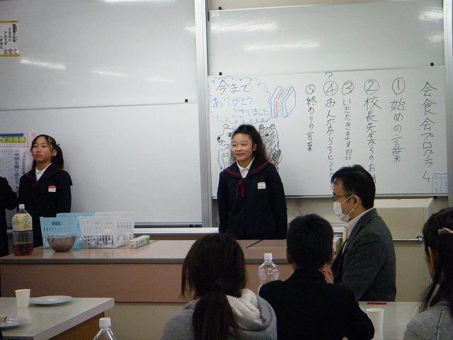 児童代表の子供が、3人の先生に感謝の気持ちを伝えていました。