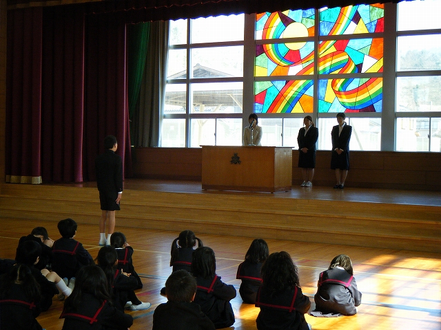 さて、今日は西荒屋小学校を離れる先生方とのお別れの式がありました。