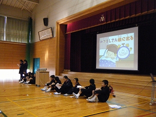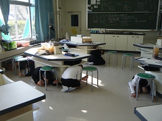 今日は10時に町のスピーカーから緊急地震速報訓練の防災放送が流れると、子どもたちはすぐにその場で「しゃがむ・かくれる・じっとする」を1分間行いました。終了後は学級で大事なことを確認し合いました。防災意識や適切な行動を身につけていくために、普段からの訓練をしっかり行っていくことが大切ですね。