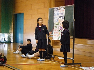 続いて行われた児童集会では2年生による音読劇「お手紙」の発表がありました。