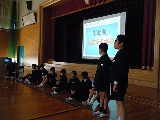 5限目に学習発表会がありました。各学年のテーマは、1年生は朝顔の成長、2年生は生き物や町探検、3年生はウサギの特徴や飼い方、4年生は障害をもつ方との交流からの学び、5年生は河北潟の汚れと浄化、6年生は将来就きたい職業でした。プレゼンは、よく調べてわかりやすくまとめてあり、一人ひとりが役割分担をして発表をしました。