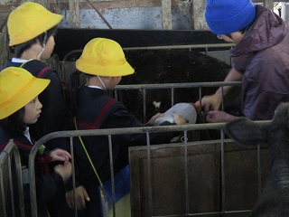 最後には、朝絞りたてだという牛乳をいただき、子どもたちからは「温か~い」「いつも飲んでいるのと違う」という感想があがりました。