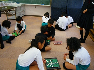 昼休みに企画委員会がにしっこルームで遊びの会を開きました。オセロや手作りのまと当てなどにみんな大喜びでした。なかよく楽しんでいました。