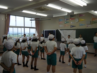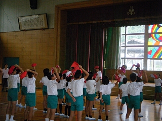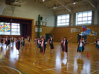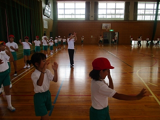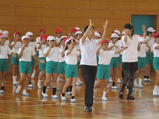 毎年、運動会で、児童、保護者、地域の方々で踊る内灘なんと節を講師の先生をお招きして練習しました。内灘のいいところをたくさん盛り込んである歌に合わせて、リズム良く踊るのはなかなか難しいですが、少しずつ上手になっていきました。前半は体育館で、後半は運動場で練習しました。子どもたちは、当日、たくさんの方々と一緒に踊りを楽しみたいと思っています。保護者や地域の皆さまのご参加をお待ちしています。