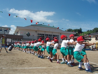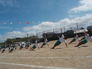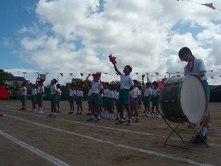 すがすがしい秋空の下、運動会が盛大に行われました。児童会のスローガン「チームで協力し、優勝めざしてがんばろう」どおり、みんな、チーム一丸となって、一生懸命に競技や演技をしました。大変、見事でした。係活動も4・5・6年生は責任を持って最後まで取り組みました。特に6年生はチームのリーダーとしてみんなを率いてがんばりました。