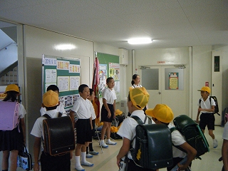 『あかるく・いつでも・さわやかに・つながろう・あいさつのわ』を全校の合言葉にして、毎朝登校班ごとに「おはようございます」を呼びかけています。元気よく挨拶し合うのはとてもすてきです。でも、声が小さかったり、恥ずかしがったり、残念な人もいます。