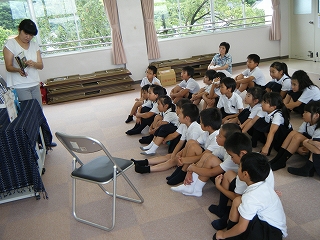 不審者にどのように対応すればよいかを学ぶ訓練を全校で行いました。