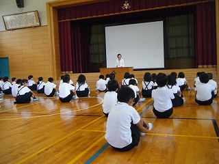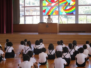 背中をピンと伸ばして校長先生のお話を聞く姿が見られました。