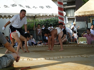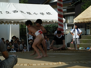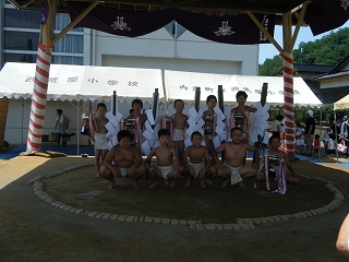 58回目となる本校恒例の相撲大会が、川口町長様はじめ、来賓の皆さま、地域の皆さま、保護者の皆さま、女子児童の熱い応援の中で、盛大に行われました。1年生から6年生までの全男児が各自真っ正面から堂々とぶつかり合い、勝つぞと言う気持ちが1%強いかどうかが勝敗を左右する、なんとも白熱した取組でした。