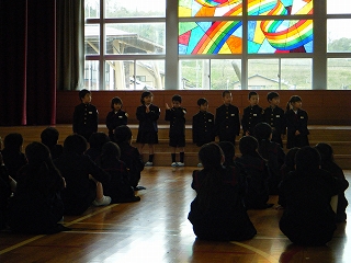 今日は1限目に全校集会があり、その後児童集会がありました。