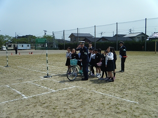 4年生は安全確認についてなどの講義を受けたあと、運動場に特設したコースに出て、実際に乗って確かめました。