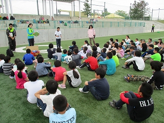 1年生は正しい道路の歩き方について、4年生は自転車の安全な乗り方について学びました。