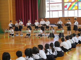 最初に4年生の学年発表がありました。歌やリコーダー、鍵盤ハーモニカでの演奏でみんなを楽しませてくれました。