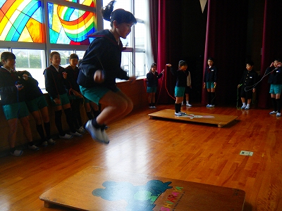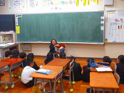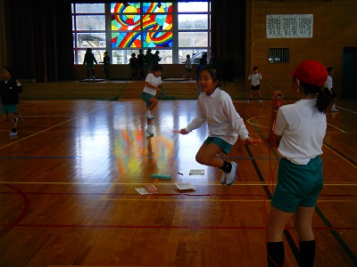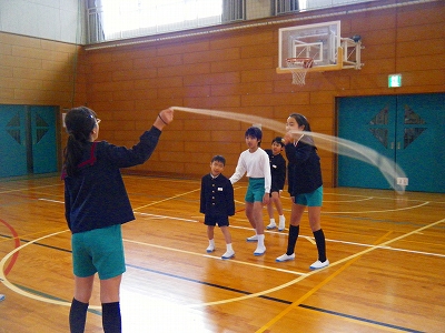 1年生が生活科で、保育園の年長さんを招いて学校を紹介したり、得意技を紹介したりしました。そのあと、体育館でいっしょに遊んだり、手作りプレゼントも渡したりしました。年長さん達はとっても嬉しそうfでした。1年生は、お兄さん、お姉さんらしさを発揮し、誇らしそうでした。