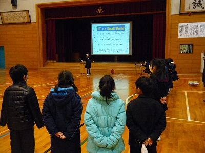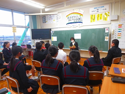いつも登下校の時に自分たちを見守ってくださる安全ボランティアの方々へ、子どもたちが感謝の会を開きました。雨の日も風の日も朝早くから、また、忙しいにも関わらず街頭に立ってくださり、あたたかい挨拶の声をかけてくださったり元気のない子を心配してくださったりと、大変お世話になっています。6年生の代表が6年間のお礼の言葉を話し、6年生全員がお礼のメッセージカードを渡しました。そのあと、6年生を送る会へも参観をお願いし、いっしょに楽しんでいただきました。