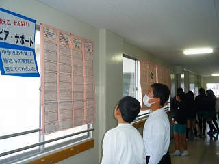 内灘町では、小中連携の一環として、各小学校6年生の中学校生活への質問に対して、内灘中学校の生徒の皆さんがアドバイスメッセージを書いてくれます。今日、廊下にはりだされたメッセージを6年生は一生懸命読んでいました。あたたかい先輩達の心遣いに中学校への明るい希望が膨らむ6年生達です。