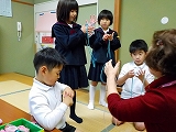 お手玉・あやとり・こま・羽根つき・竹とんぼを教えていただきました。
