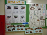 反対側のなかよし掲示板には、企画委員が作った大きな新聞やなかよしタイムでの写真がはってあります。みんなの楽しそうな様子が丸わかりです。
