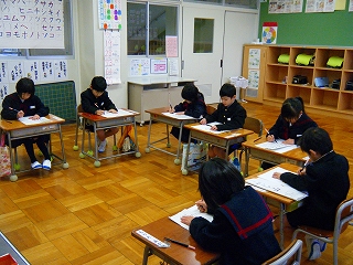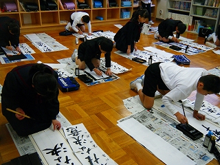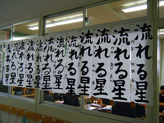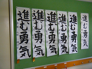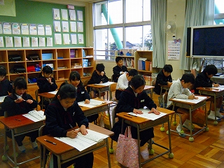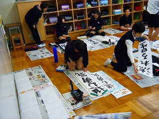 3学期が始まりました。始業式の後、各学年毎に書き初めにチャレンジしました。1・2年は硬筆、3年以上は毛筆です。緊張の中、どの子も真剣に字と向き合い、字の形や全体のバランスに気をつけながら元気いっぱいに書いていました。