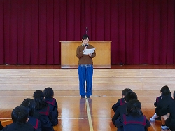 3年生は、What is that?ー色、形などの3ヒントクイズで全校を楽しませてくれました。答えた児童は、That's right!と言われて嬉しそうでした。
