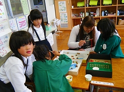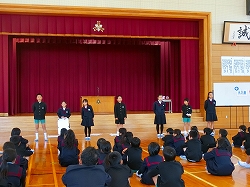 5年生は、兼六園での国際交流インタビューの様子を再現してくれました。英語を使うと色々な国の人と交流できることを実感したと話していました。