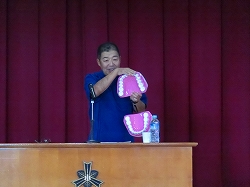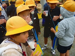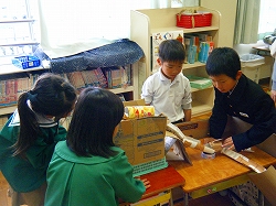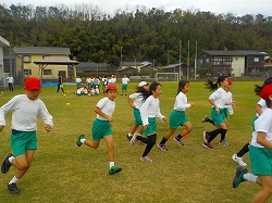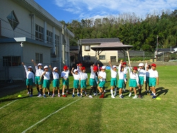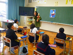 1年生は、英語活動で作ったモンスターのお面をつけて、My name is~.I am seven years old.などの自己紹介や数の歌をクリアーな発音で披露しました。