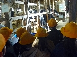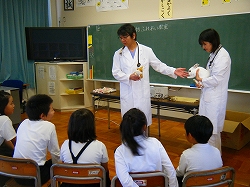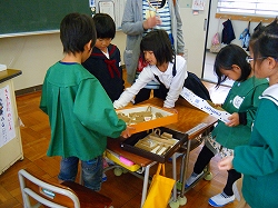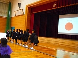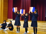 4年生は、外国の友だちに西荒屋小学校を案内するという設定で、Go straight. Turn left.This is a gym.などの英語を使って楽しいやりとりを見せてくれました。