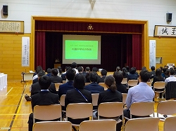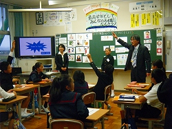 石川県教育委員会から「英語教育強化拠点地域事業」の研究指定を受け、本日、中間発表として、公開授業・全体会を行いました。町内外からのたくさんのお客様に見られる中、子どもたちは英語の授業を楽しんでいました。