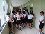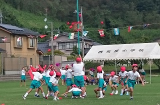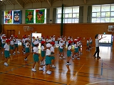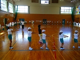 先生が「手を上に高く上げるときれいに見えますよ」とアドバイスをされ、みんなそのように踊ると確かにきれいに見えました。本番は、おうちの方や地域の方にも一緒に参加していただくので大きな輪になり、楽しみです。たくさんの参加をお待ちしています。