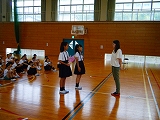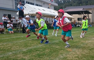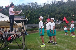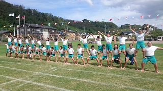 運動会で恒例のナント節の踊り方を地域の踊りの先生に教えていただきました。初めての1年生も一生懸命に覚えようとしていました。