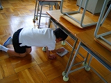 黒板は,粉を巻き上げないように,上から下へしっかりふきます。