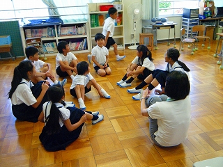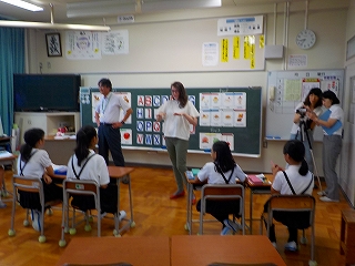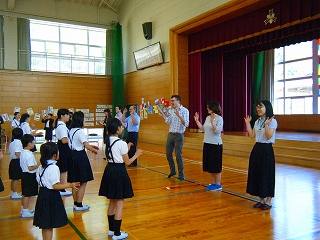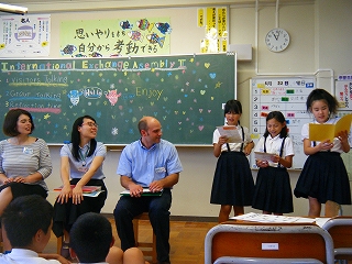 県内の学校で活躍されている外国出身のALT等の皆さん6名をお招きし、全校で英語を使っての活動を行いました。児童は、自己紹介や合唱、ゲーム、インタビュー等で英語でのコミュニケーションを楽しんだり、ゲストから出身国の紹介などを聞いて異文化を学んだりしました。