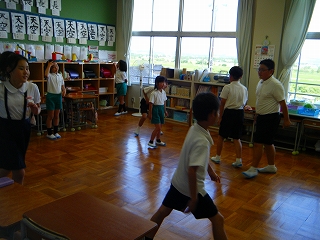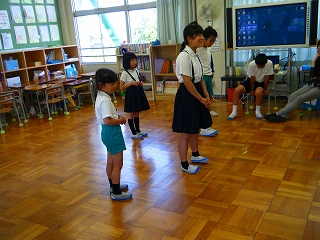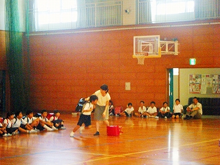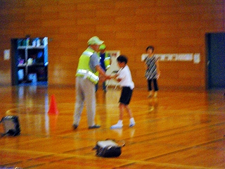 安全ボランティアの方々にご指導をいただき、不審者に捕まりそうになった時の逃げる訓練を全校でしました。大きな声で「たすけてー!」と叫ぶことや、ランドセルを放って走ることなど練習しました。『イカのおすし』(知らない人についていかない・車にのらない・大声でさけぶ・すぐ逃げる・知らせる)を確認しました。