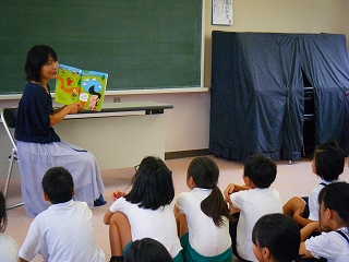 今日は、4~6年生が英語の絵本の読み聞かせをしていただきました。全部、英語でしたが、子どもたちは挿絵を手がかりに内容をつかんでいました。内容の面白さに加えて英語の響きもすてきに響いてきて、梅雨の鬱陶しさを暫し忘れて朝のひとときを楽しみました。来週の水曜日は1~3年生の番です。お楽しみに。