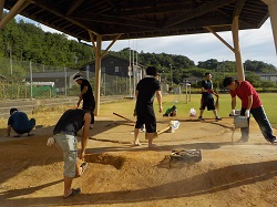 土俵の補修作業と、土俵近辺の除草作業を行いました。