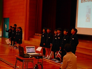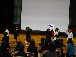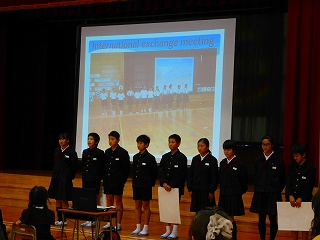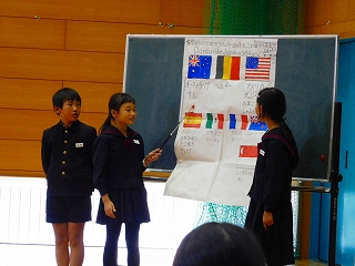 5・6年生は、国際交流集会や国際交流インタビューで学んだことやこれから頑張りたいことなどを発表しました。