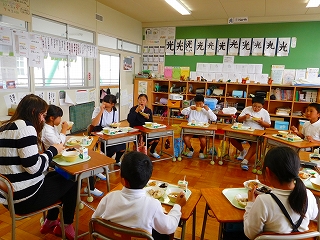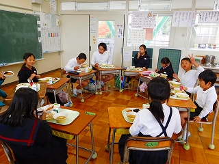 給食は、みんなで丸くなって、お互いの顔が見えるようにしているグループもありました。きっといつもよりおしゃべりがはずんだことでしょう。